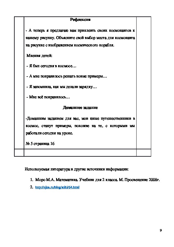 1. Моро М.А. Математика. Учебник для 2 класса. М. Просвещение 2008г.