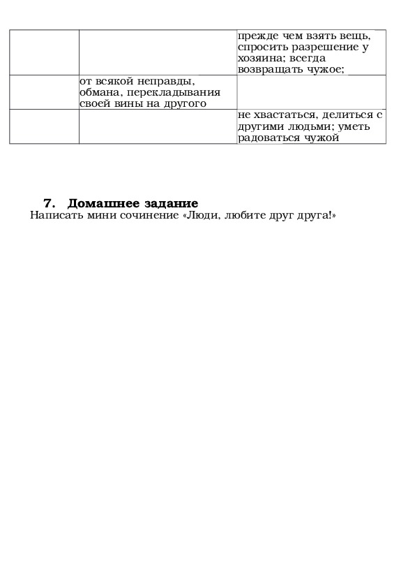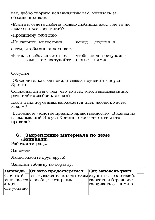 2. Воспитательная: на примере заповедей показать правильное отношение к человеку,