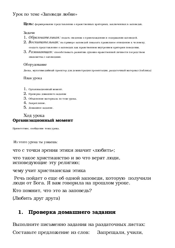 3. Развивающая: способствовать развитию духовно-нравственной личности посредством знакомства с заповедями.Конспект урока "Заповеди любви" 4 класс