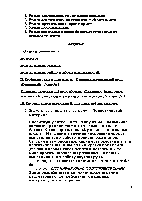 II. Сообщение темы и цели занятия. Применить интерактивный метод