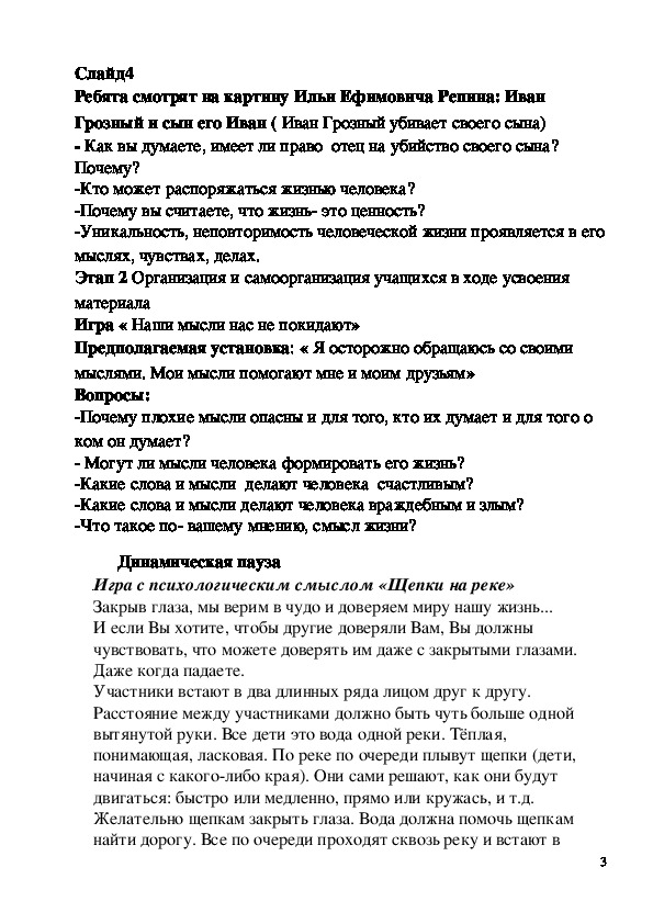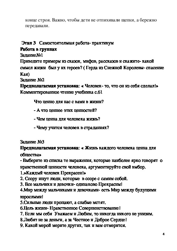 Предполагаемая установка: « Жизнь каждого человека ценна для