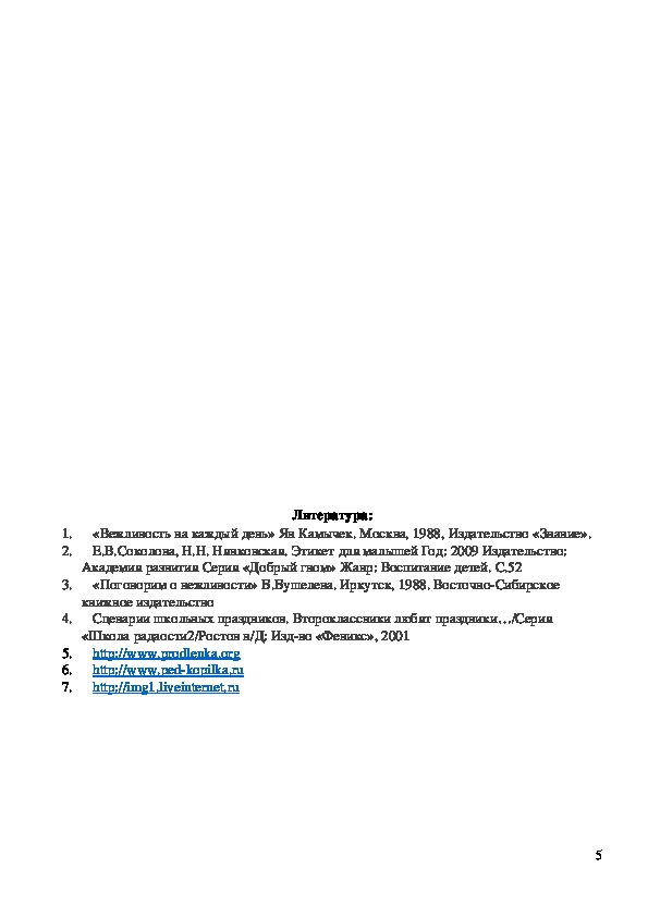 Предварительная работа: проведение занятий из цикла «Ежели вы вежливы»;