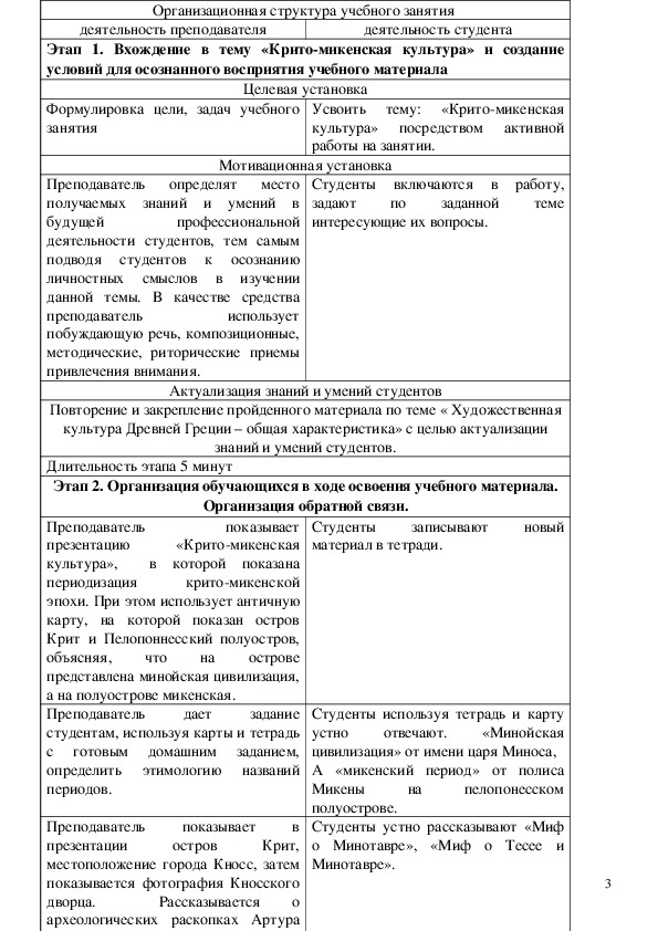 Цель учебного занятия: сформировать у студентов представление о крито-микенской художественной культуре.