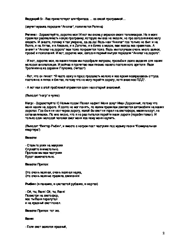 1Ведущий 3: Вас приветствует агитбригада … со своей программой…