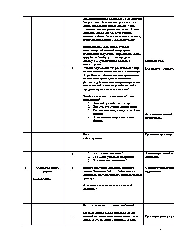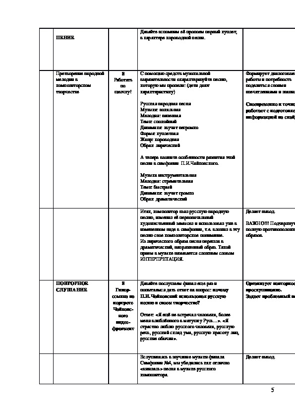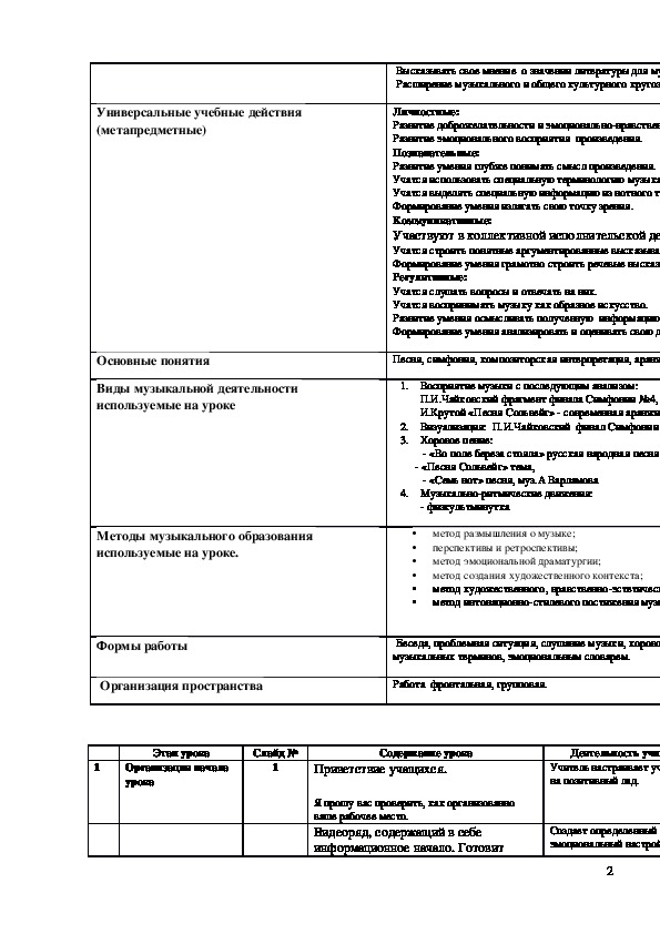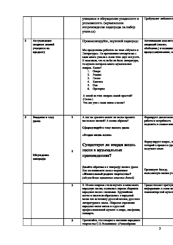 ТЕХНОЛОГИЧЕСКАЯ КАРТА УРОКА МУЗЫКИ В 5 КЛАССЕ