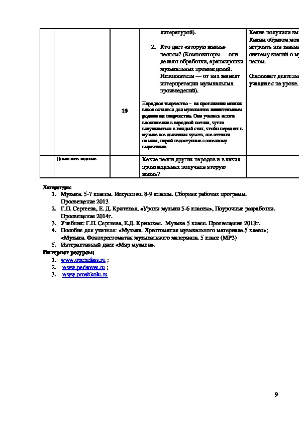 2. Г.П. Сергеева, Е. Д. Критская, «Уроки музыки 56 классы», Поурочные разработки.