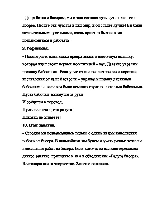 данное занятие, приходите к нам в объединение «Радуга бисера».