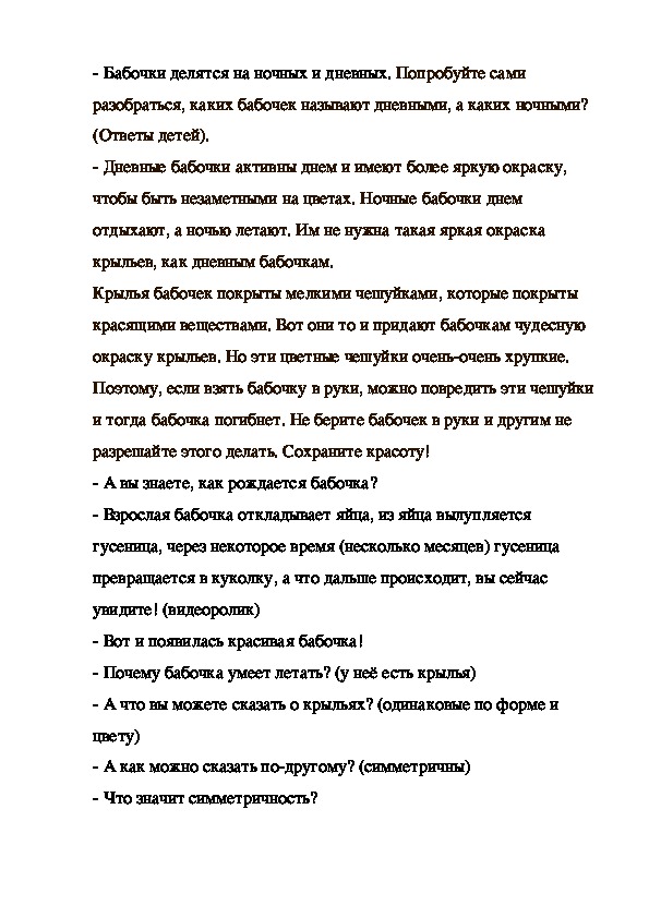 бабочек). Бабочки делятся на ночных и дневных. Попробуйте сами