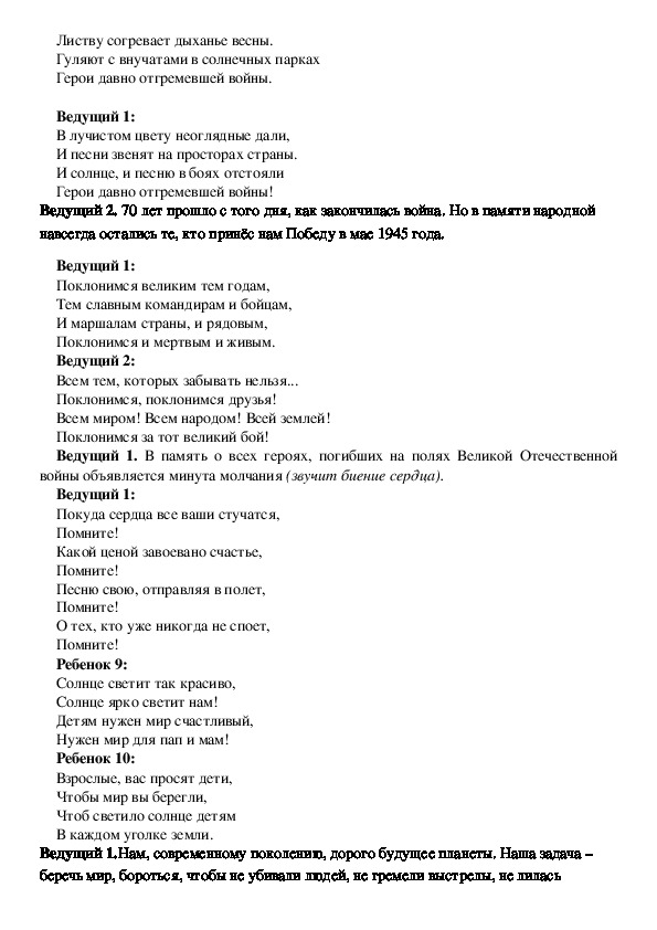 Сценарий праздника "9 Мая - День Победы"