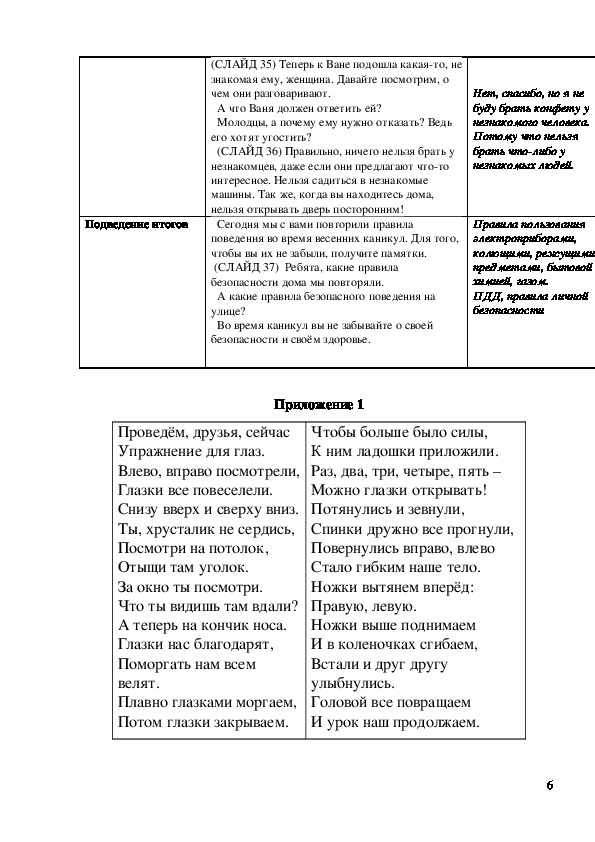правилах безопасности во время каникул, т.е.