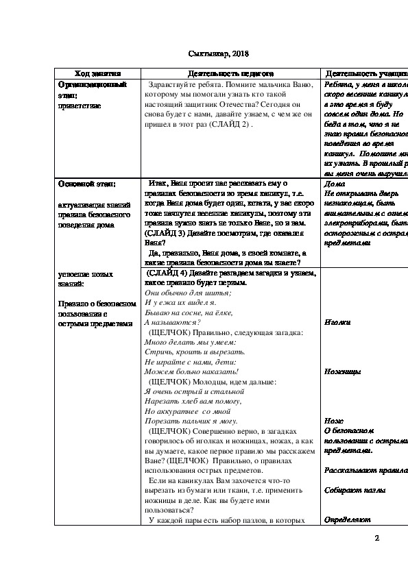 Ход занятия