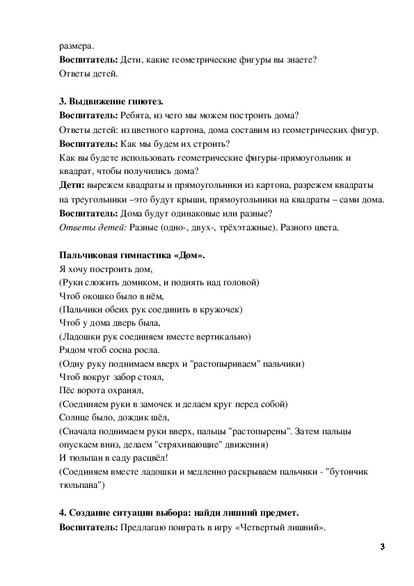 Ответы детей: из цветного картона, дома составим из геометрических фигур.