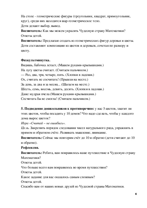 Конспект занятия для детей старшего дошкольного возраста «Чудесная страна Математики»