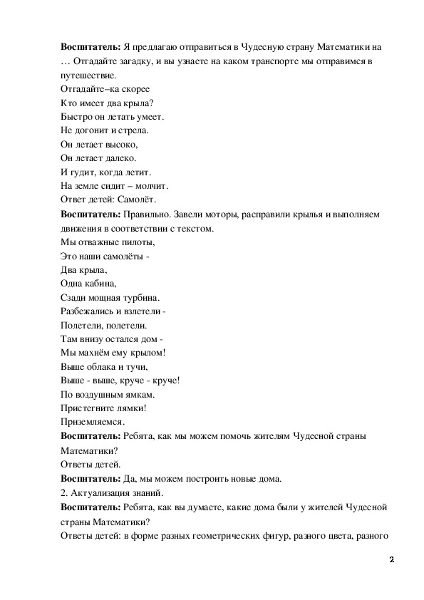 Воспитатель: Правильно. Завели моторы, расправили крылья и выполняем
