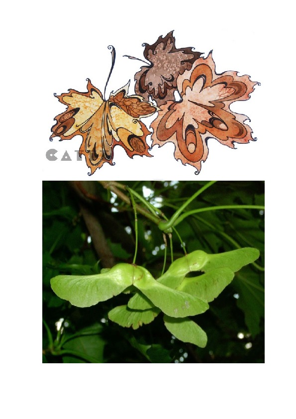 Материал: картинки деревьев, карточки с изображением листьев и плодов, мяч, краски, кисточки.