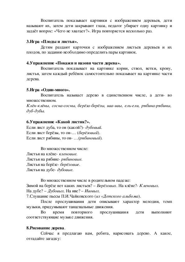 Предварительная работа: рассматривание деревьев на прогулке в разное время года.