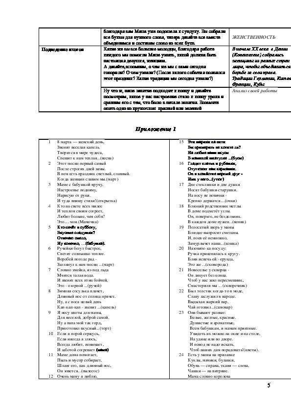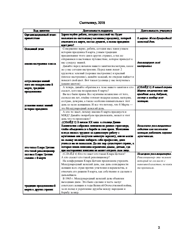 Конспект занятия "Международный женский день - 8 марта" 4 класс.Тема: Международный женский день – 8 марта