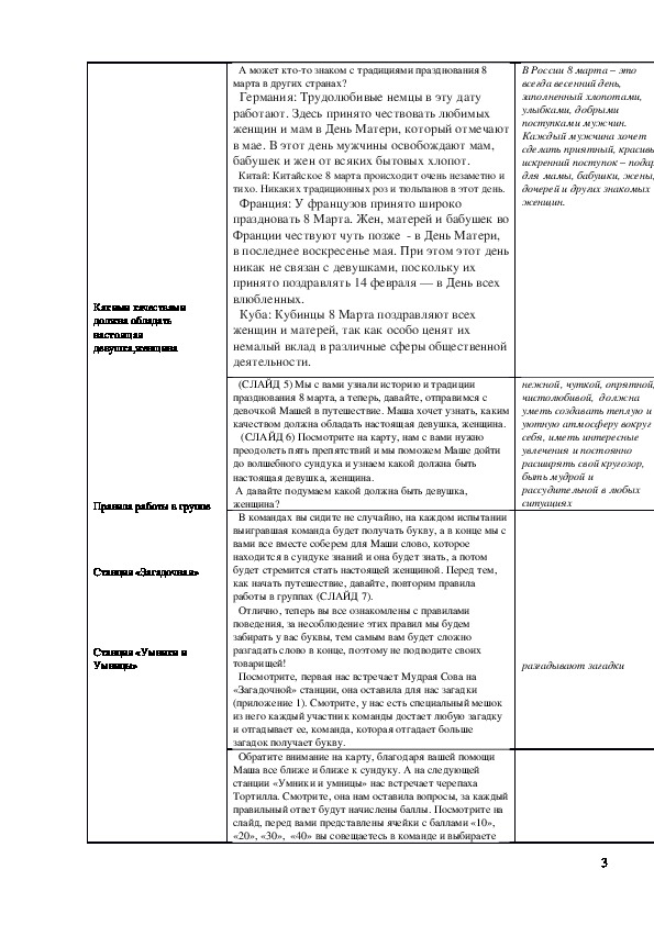 Цель: воспитание чувства уважения к девочкам и женщинам.
