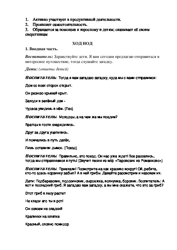 Дети: Подберезовик, подосиновик, сыроежка, волнушка, боровик. Воспитатель: А