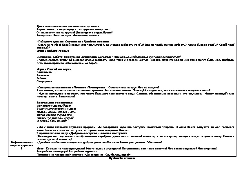 Билингвальный компонент: Сәлеметсіздерме, балалар! Сау болыңыздар, цветы -гүлдер, деревья -ағаштар, грибы –қозы құйрық, ягоды –жидектер.