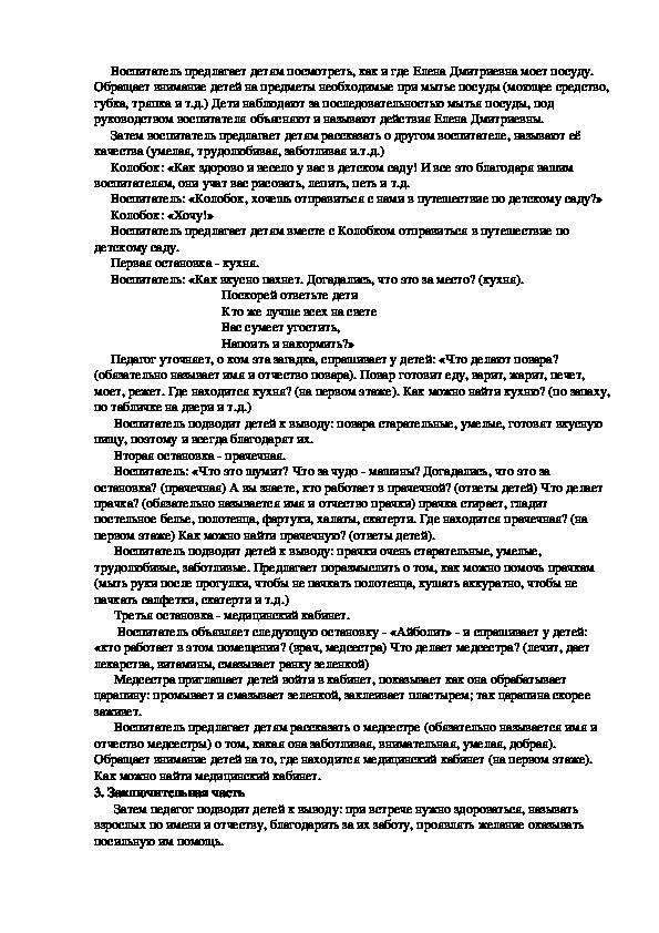 посильную им помощь.Колобок благодарит воспитателя и детей за замечательное путешествие по детскому