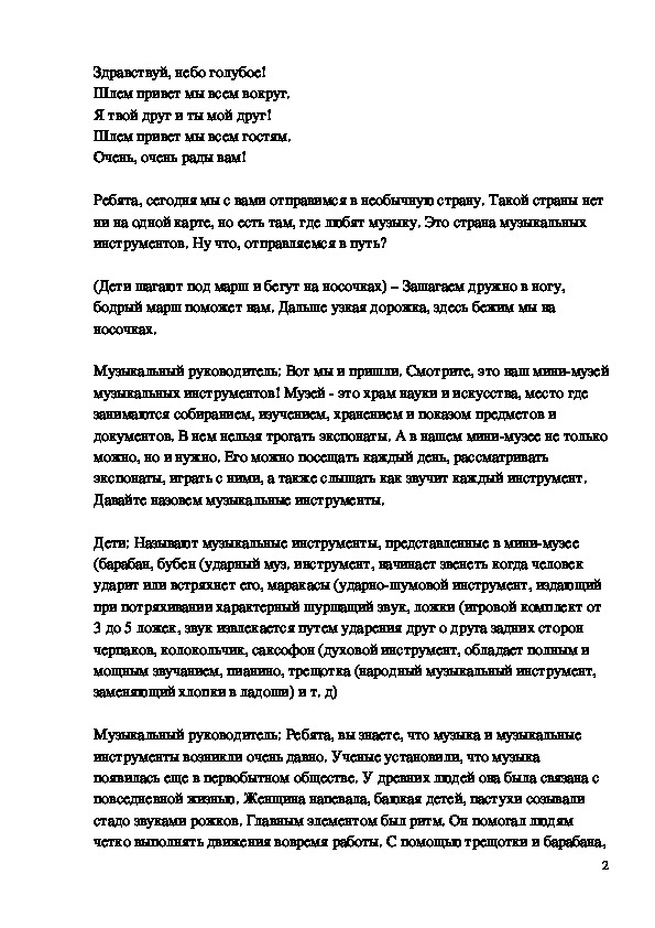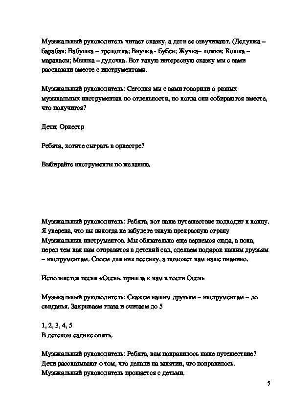 5. Воспитывать умение слушать товарищей.Конспект занятия по развитию речи в подготовительной группе «В мире музыкальных инструментов»