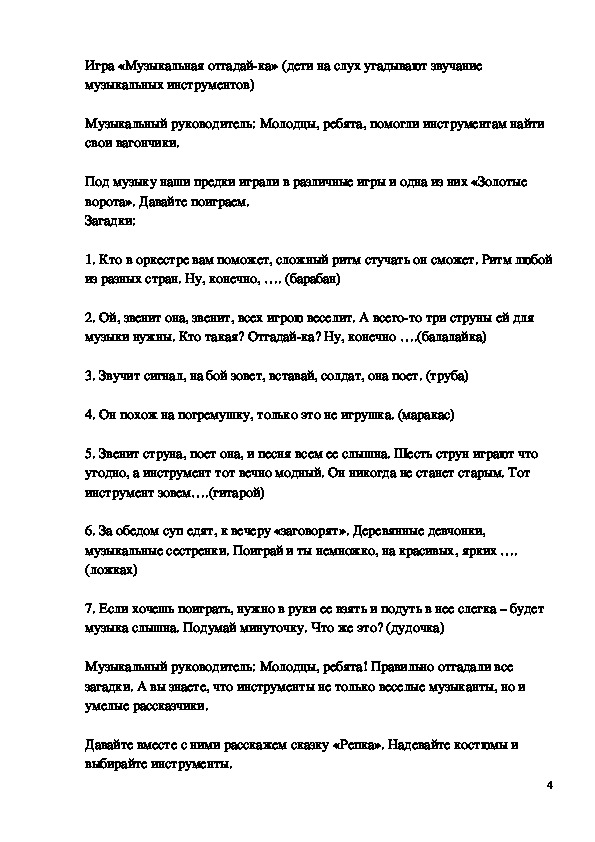 загадки. А вы знаете, что инструменты не только веселые музыканты, но и