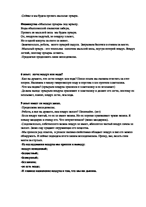 Систематизировать и уточнить представления детей о свойствах воздуха.