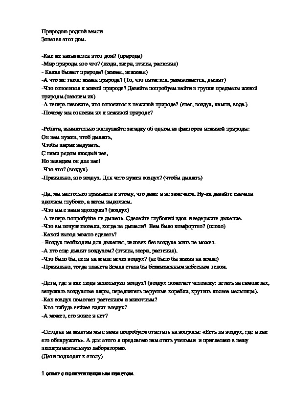 - Расширить представления детей о значимости воздуха в жизни человека.