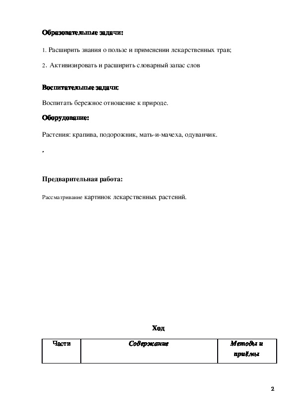 Конспект занятия "В царстве лекарственных растений" подготовительная группа.Конспект занятия по экологии