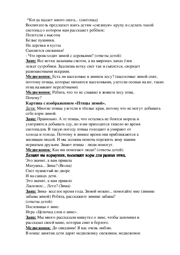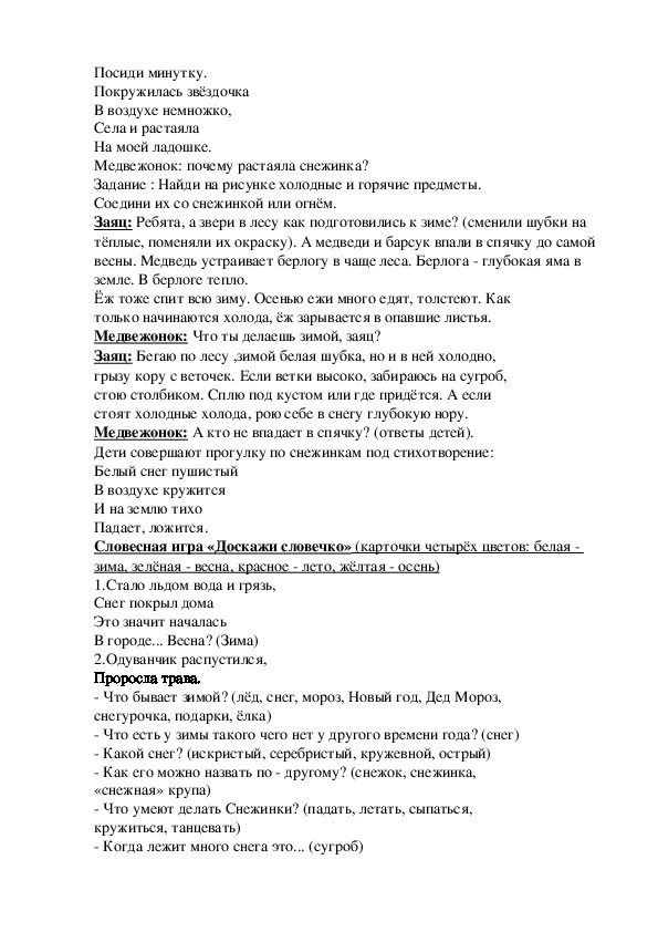 видел снега. Давайте, ребята, расскажем медвежонку о зиме.