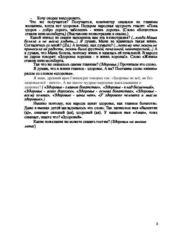 здоровье? ( «Здоровье главное богатство», «Здоровье клад бесценный»,