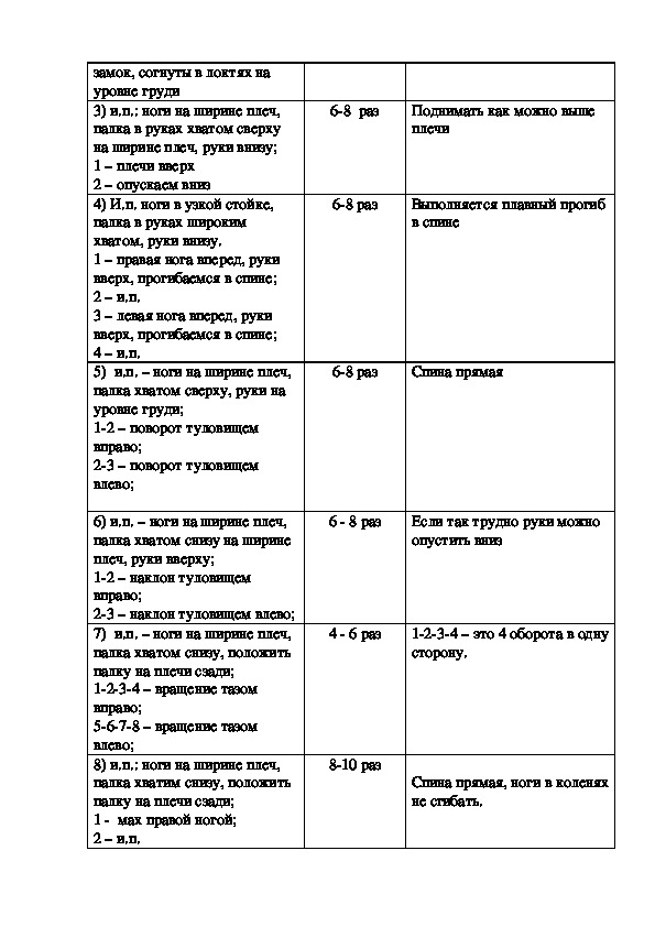 Комплекс ОРУ № 12 на месте с гимнастическими палками