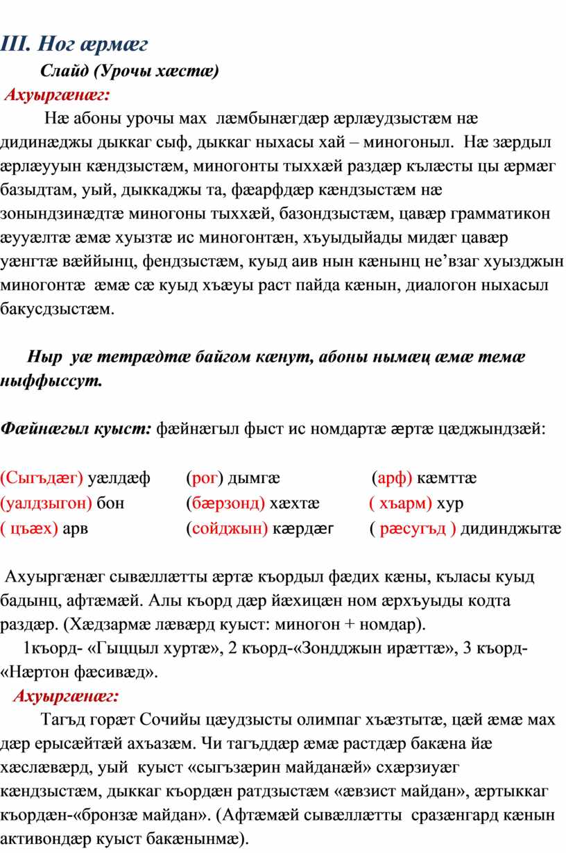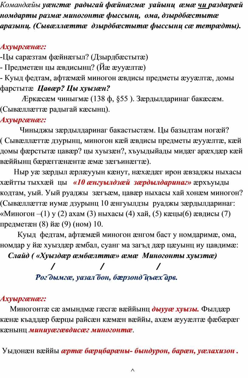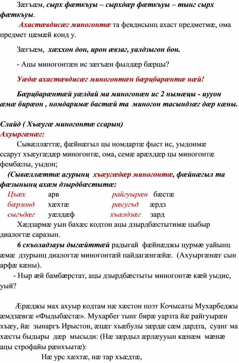 Слайд ( Хъæугæ миногонтæ ссарын)