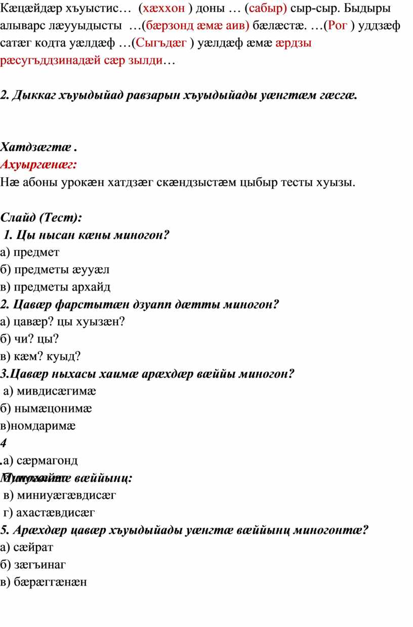 Нæ абоны урокæн хатдзæг скæндзыстæм цыбыр тесты хуызы.