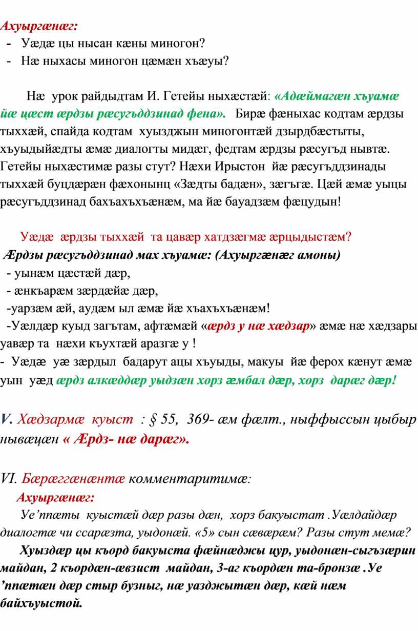 V. Хæдзармæ куыст : § 55, 369- æм фæлт., ныффыссын цыбыр нывæцæн « Æрдз- нæ дарæг».