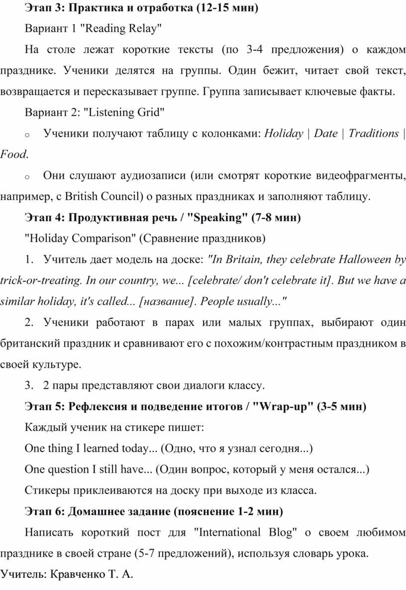 2. Ученики работают в парах или малых группах, выбирают один британский праздник и сравнивают его с похожим/контрастным праздником в своей культуре.