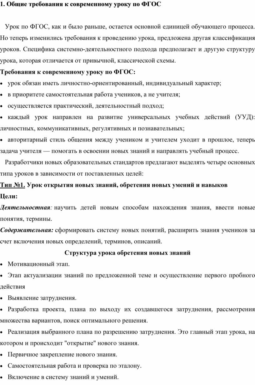 1. Общие требования к современному уроку по ФГОС