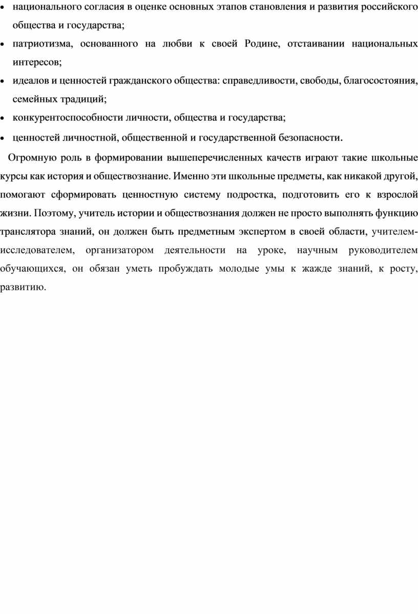 · национального согласия в оценке основных этапов становления и развития российского общества и государства;