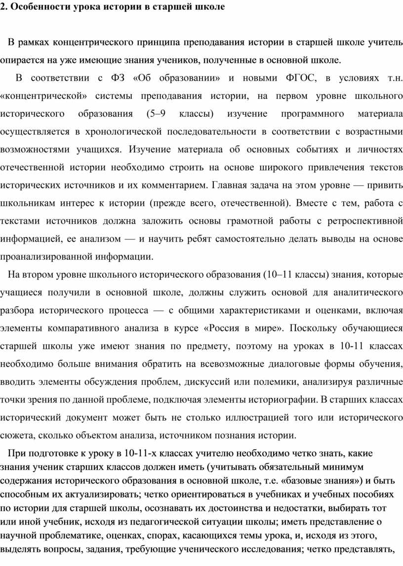 2. Особенности урока истории в старшей школе 9-10