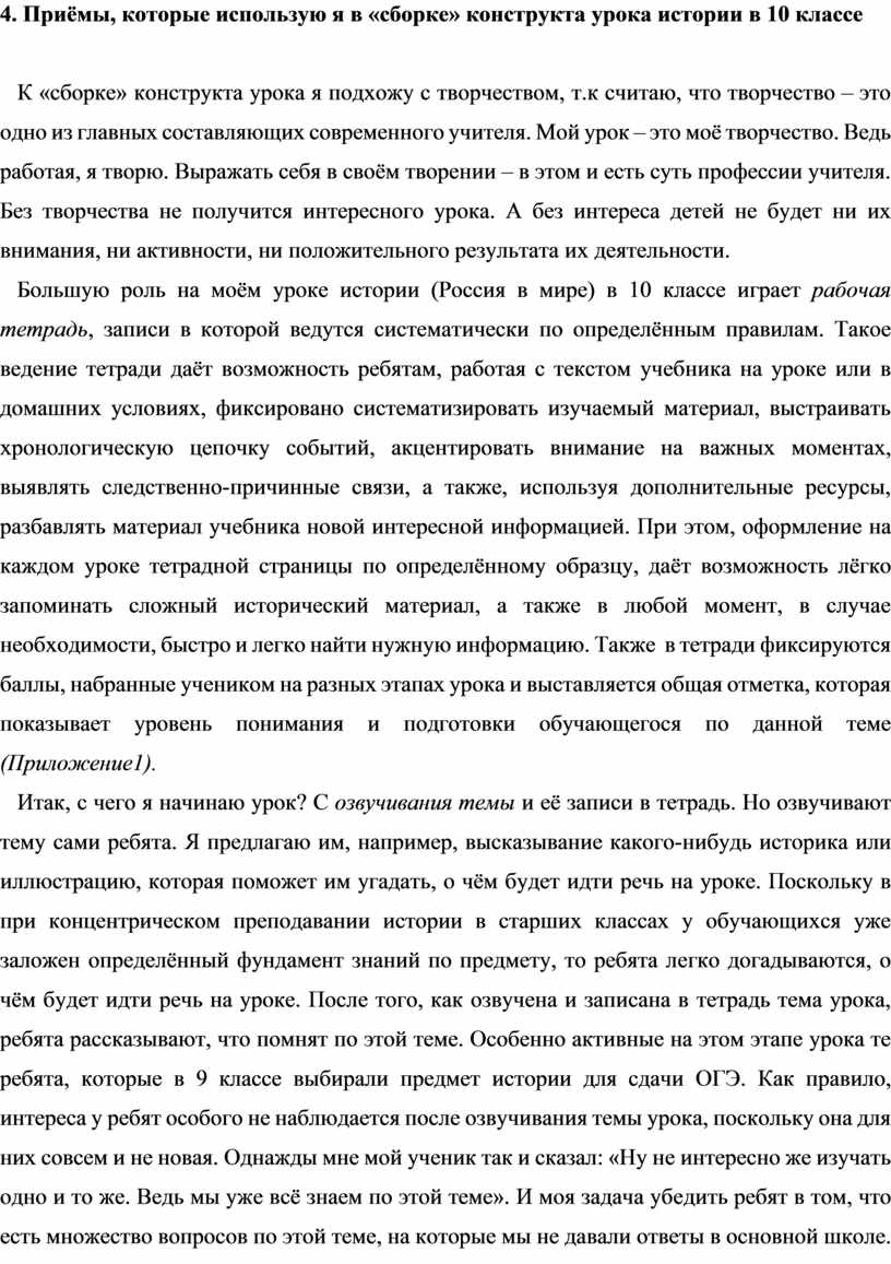 4. Приёмы, которые использую я в «сборке» конструкта урока истории