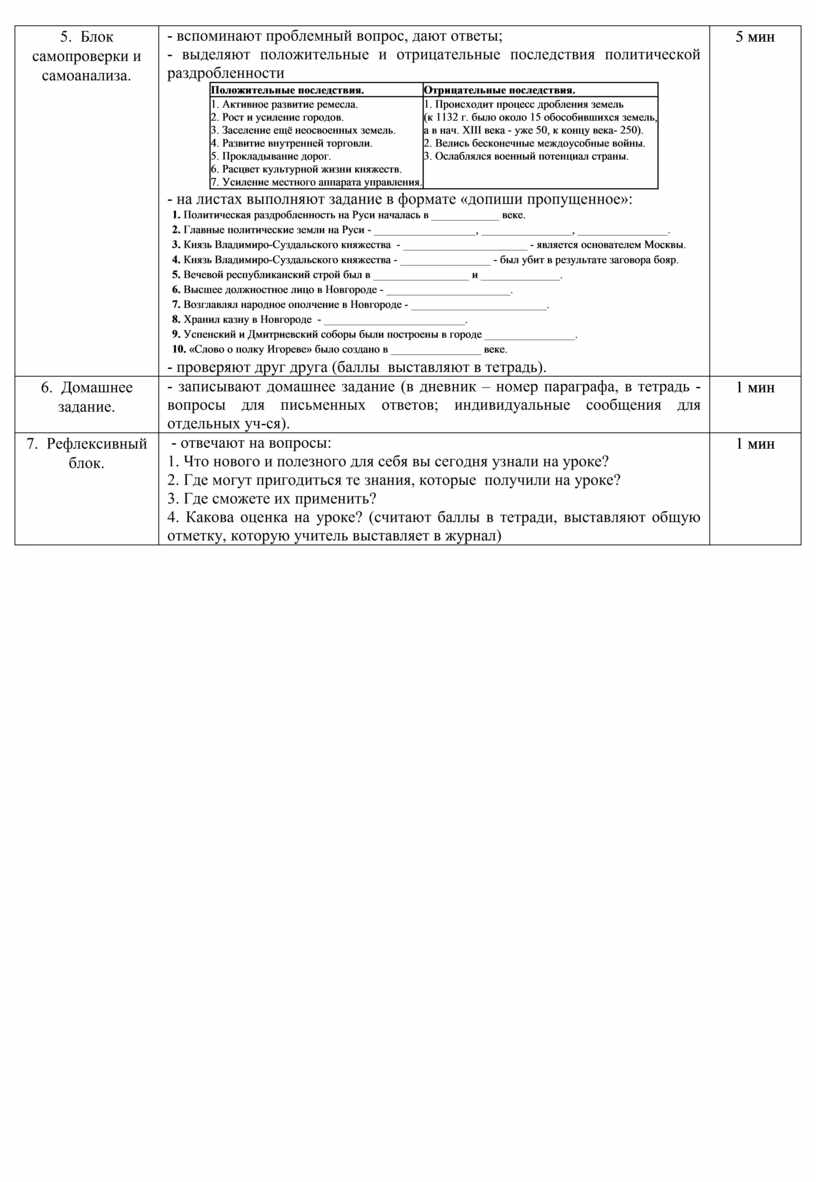 - вспоминают проблемный вопрос, дают ответы; - выделяют положительные и отрицательные последствия политической раздробленности