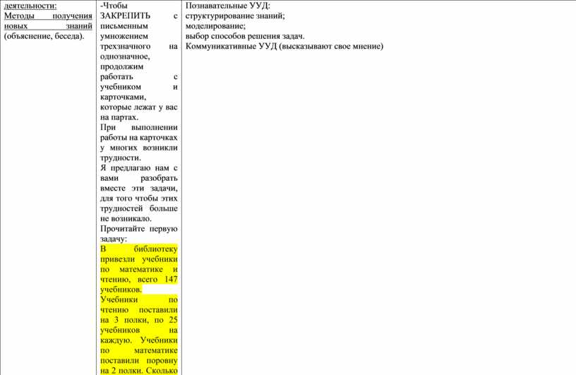 3. Усвоение новых знаний и способов действий по изученному материалу. Задача: формирование способности обучающихся к усвоению новых знаний по письменному умножению трехзначного на однозначное. |