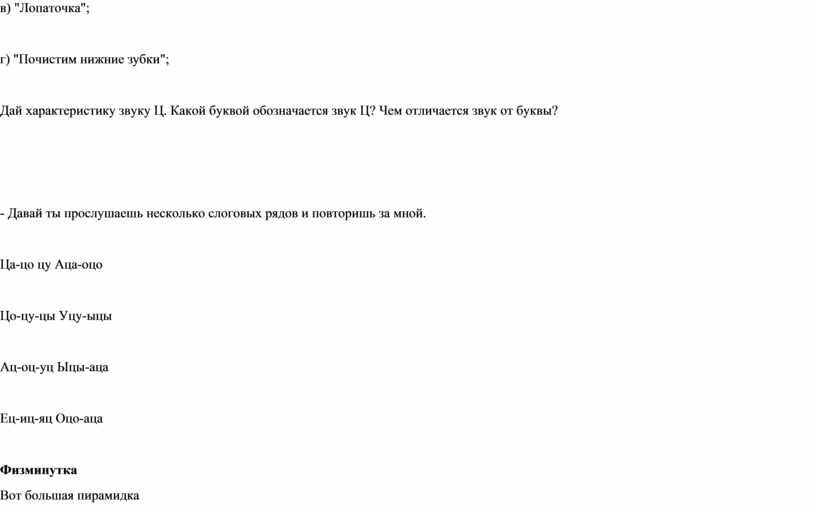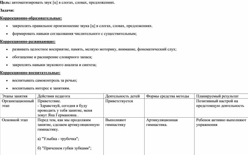 Цель: автоматизировать звук [ц] в слогах, словах, предложениях.