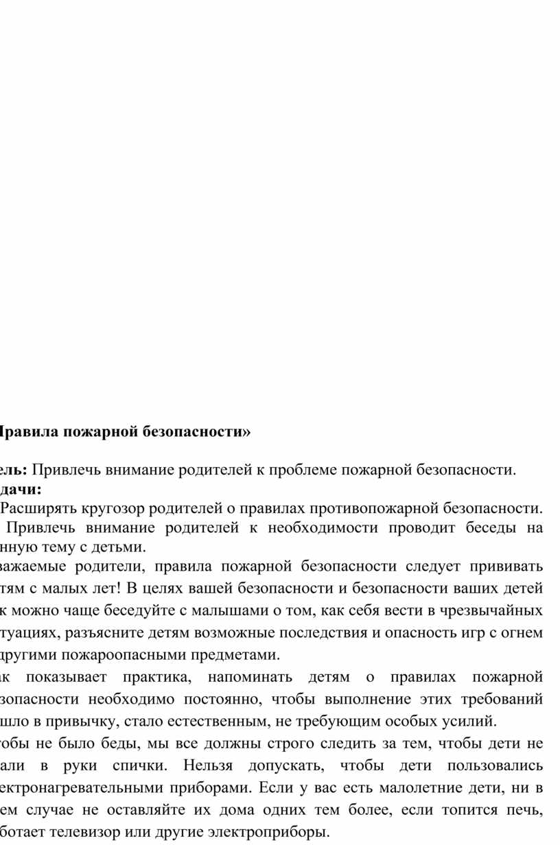 1. Расширять кругозор родителей о правилах противопожарной безопасности.