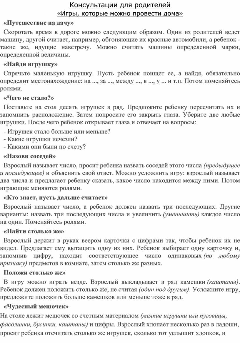 Взрослый называет число, просит ребенка назвать соседей этого числа (предыдущее и последующее) и объяснить свой ответ. Можно усложнить игру: взрослый называет два числа и предлагает ребенку сказать, какое число находится между ними. Потом играющие меняются ролями.