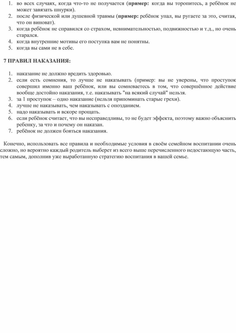 1. НЕЛЬЗЯ НАКАЗЫВАТЬ И РУГАТЬ КОГДА: