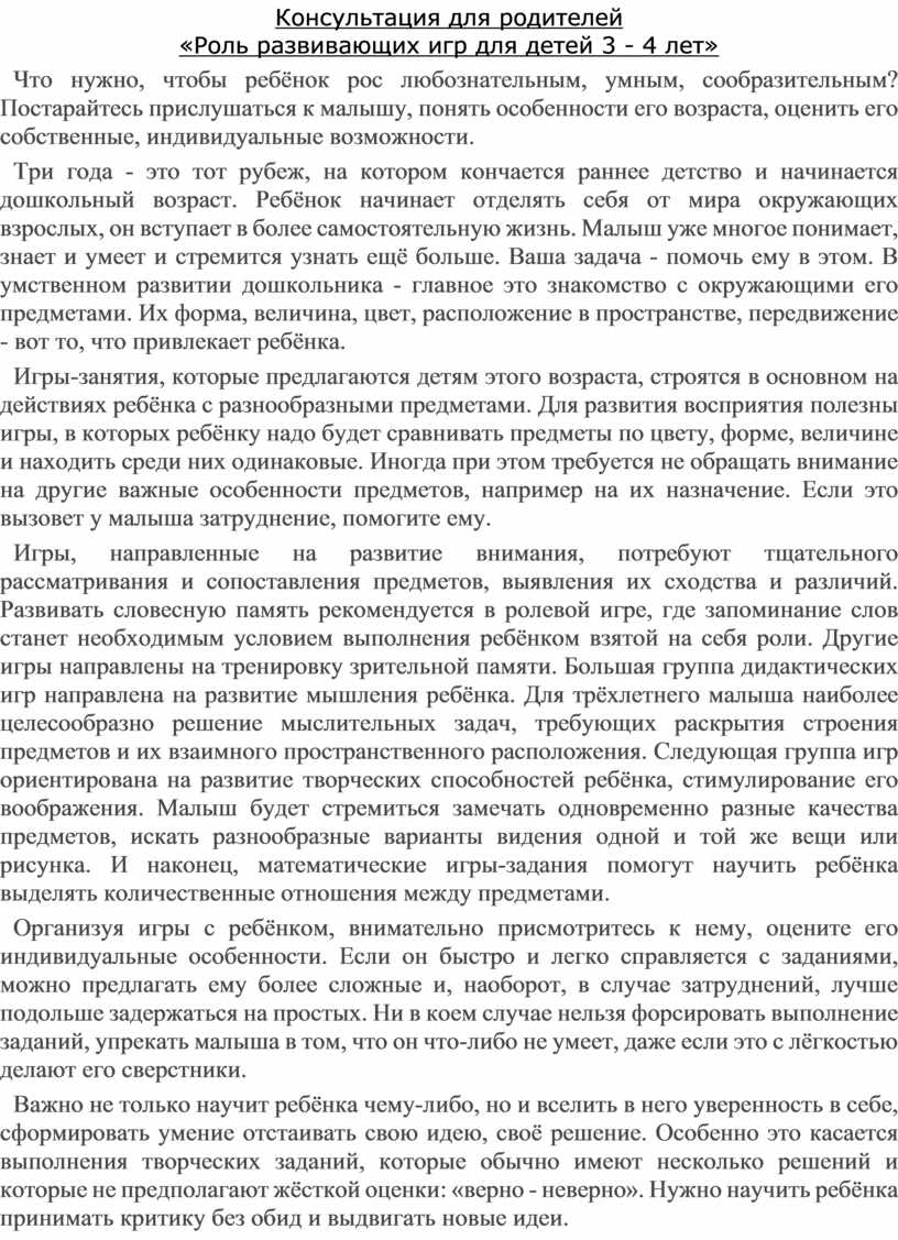 Такие игры не могут двигать вперёд физическое. Нравственное и умственное развитие ребёнка. Заимствуя содержание игр из окружающей действительности, дети, однако, не механически копируют эту жизнь, а перерабатывают впечатления жизни в своём сознании, раскрывают в играх свой характер, выявляют своё отношение к изображаемому. Семья, детский сад показывают детям пример любви к труду, к своему городу. Дружеские отношения друг к другу. Все эти качества проявляются в играх детей. У детей игры занимают самое большое место. Тематические игры, в большинстве случаев, подсказываются имеющимися игрушками, которые являются первичным организующим началом в играх детей. Дети быстро переходят от одной роли к другой. Родители должны заботиться не столько о том, чтобы накупить как можно больше игрушек, сколько о тщательном из отборе, чтобы они были доступными, яркими, способными побудить ребёнка к полезной игре. Вовремя дать ребёнку нужную игрушку – значит поддержать и оживить его игру. Уже в младшем возрасте дети любят несложные сказки, сопровождаемые действием.