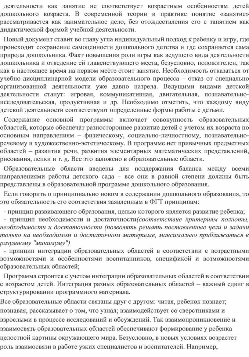Если говорить о принципиально новом в содержании дошкольного образования, то это обязательность его соответствия заявленным в ФГТ принципам: