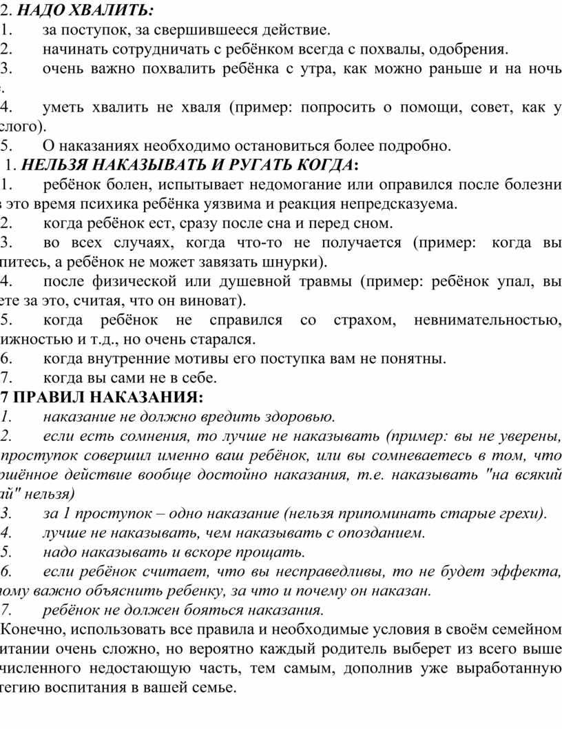 1. НЕЛЬЗЯ НАКАЗЫВАТЬ И РУГАТЬ КОГДА: